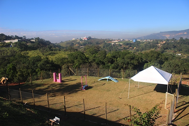 Temos 13 mil metros quadrados de espaço para cÃes, aonde são feitas atividades, como piscina, trilha, picadeiros para atividades (socialização, brincadeiras).